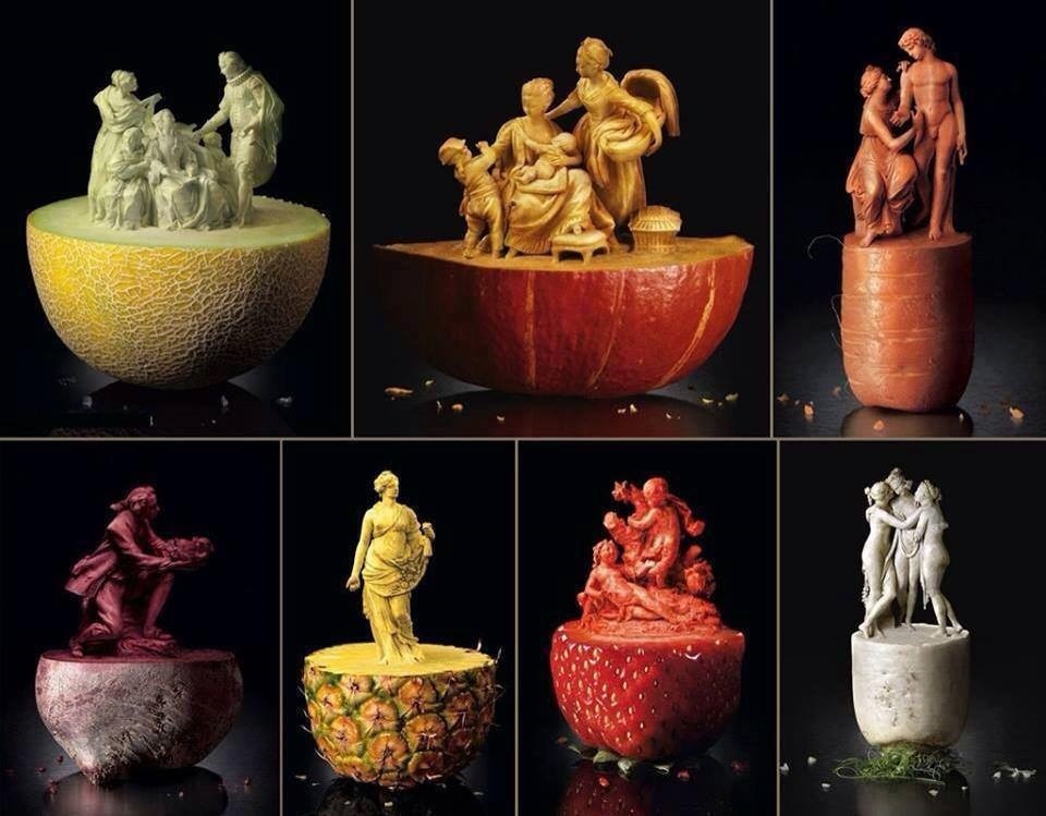 Esculturas em frutas.Criatividade, arte
